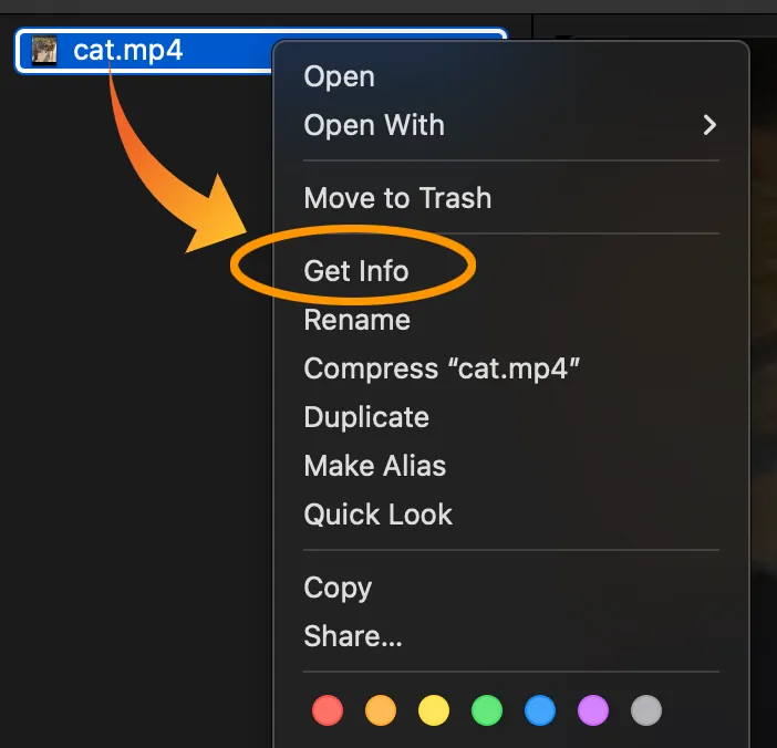 関連付けたい動画ファイル(例:movie.mp4やvideo.mkvなど)を右クリックして、「情報を見る」をクリックします