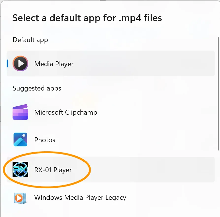 これで、同じ種類の動画ファイル(例:すべての.mp4ファイル)をダブルクリックすると、自動的にRX-01 Playerで開かれるようになります。